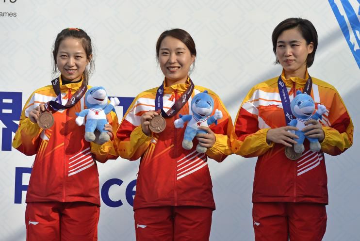中国队选手张彬彬(中)、徐红(左)、万翔燕