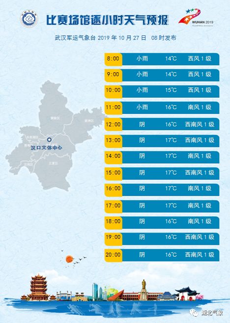【汉口文体中心逐小时天气预报】