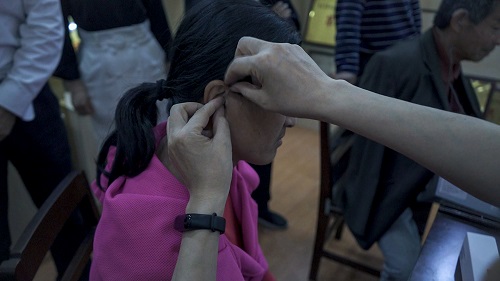 图为省残联助听器验配组在黄梅为听障残疾人进行助听器适配