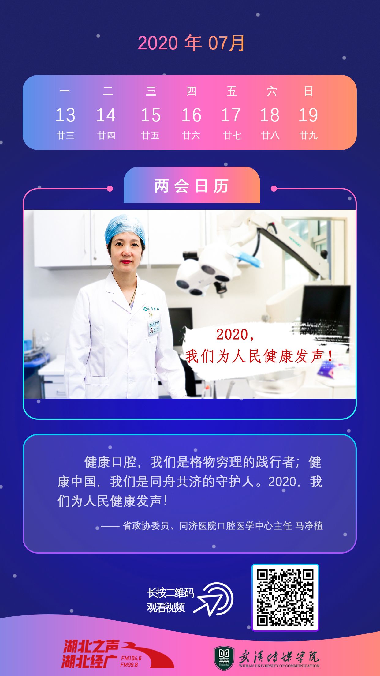 省政协委员、同济医院口腔医学中心主任 马净植: 健康口腔,我们是格物穷理的践行者;健康中国,我们是同舟共济的守护人。2020,我们为人民健康发声! (实习编辑:程傲 责任编辑:胡汉敏) 责任编辑 胡汉敏