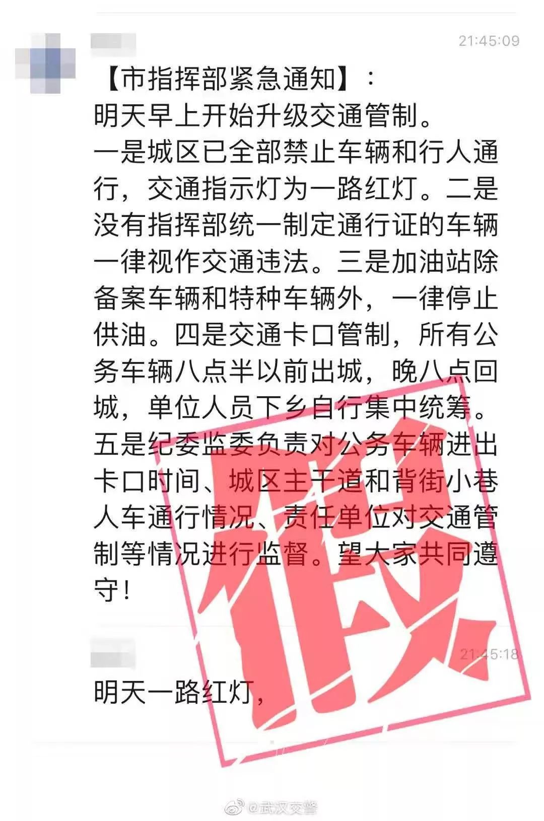 网传1月30日武汉市升级相关交通管理措施?假的!武汉交警提醒:不信谣,不传谣,请大家以官方渠道发布的信息为准。