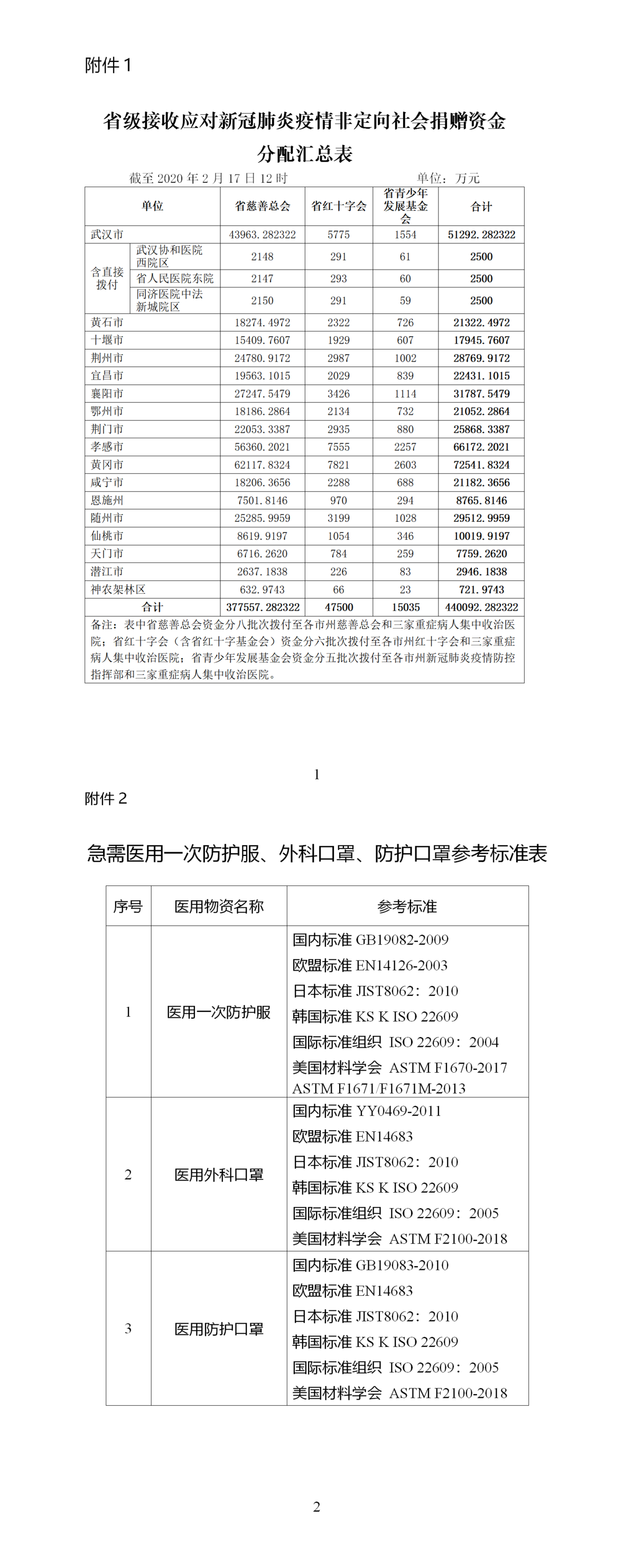 附件:1.省级接收应对新冠肺炎疫情非定向社会捐赠资金分配汇总表