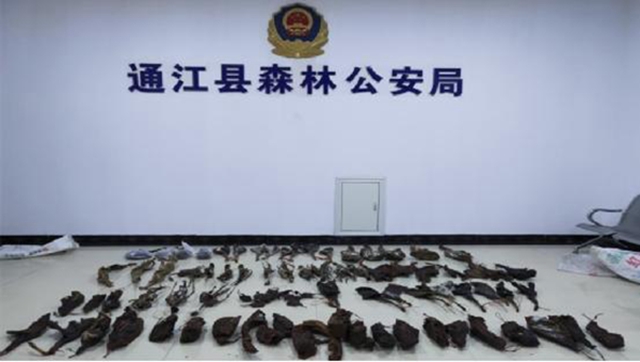 连日来,四川省通江县森林公安集中查处了一批非法捕猎、运输、出售野生动物及制品案件,查获青麂、果子狸、獾等野生动物制品800余斤。(四川省通江县纪委监委 袁大坤 供图)