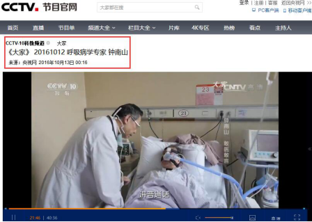进一步检索发现,该视频源自2016年10月原中央电视台人物专栏《大家:呼吸病学专家 钟南山》。节选的内容为,2016年5月,钟院士和同事们在病房对一位慢性阻塞性肺疾病患者进行观察询问。