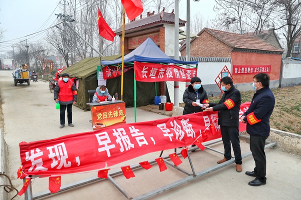 河南省长垣市纪委监委监督检查组深入卫材企业密集地区,对企业周边村落防控措施落实情况进行监督检查,为企业复工创造安全环境。(河南省长垣市纪委监委 杨涛 摄)