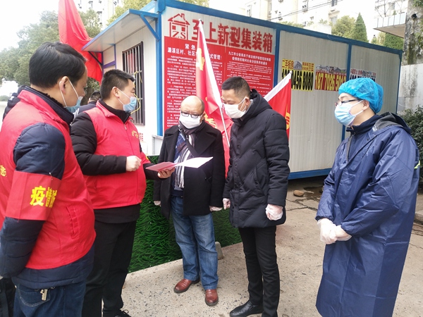 江西省九江市濂溪区纪委监委4个疫情防控督查组深入一线,强化政治督查,促进责任落实。图为濂溪区疫情防控督查二组在铁路新村检查了解重点人员排查管控、卡口出入登记等情况。(江西省九江市濂溪区纪委监委 肖明 摄)