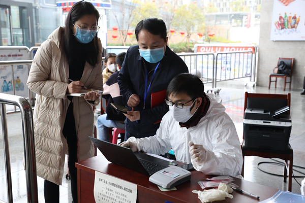 浙江省台州市黄岩区组建4个督查组,深入辖区乡镇街道、复工复产企业、火车站、公交车站等地,督查疫情期间复工复产各项防控工作落实情况,了解企业复工存在的实际困难问题,督促相关职能部门履职尽责,确保疫情防控不出差错,复工复产稳步有序。图为该区第三网格督查人员在台州火车站了解复工人员返台通道运行情况。(浙江省台州市黄岩区纪委 袁杨军 摄)