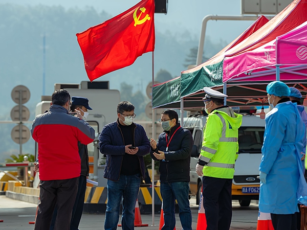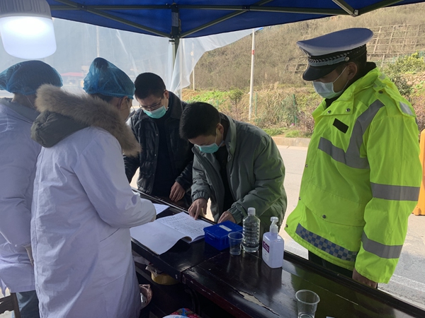 湖北省宣恩县纪委监委监督检查组工作人员对该县一处防疫卡口责任落实进行监督检查,督促相关单位及工作人员切实增强工作责任感和紧迫感。(湖北省宣恩县纪委监委 王文君 摄)