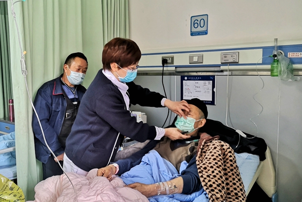 四川省乐至县人民医院每天为住院病人更换口罩,保证其他科室的住院病人也能够及时有效地预防新冠肺炎,用爱心为病人筑起一道温暖的防护屏障。(四川省乐至县纪委监委供 胡晓辉 摄)