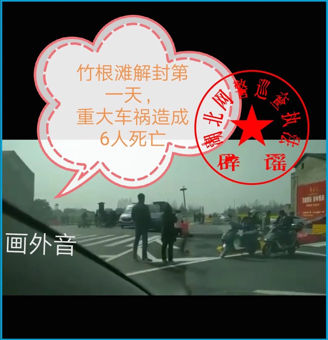 3月14日,湖北省潜江市网民微信群中出现一段描述为“解封第一天,竹根滩发生重大车祸,造成6人死亡”的视频。