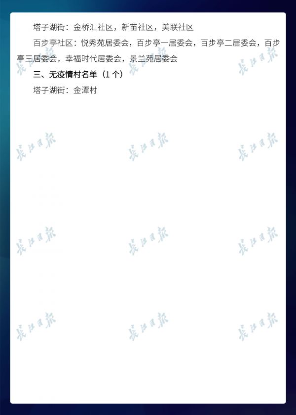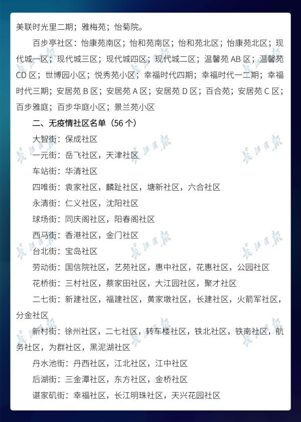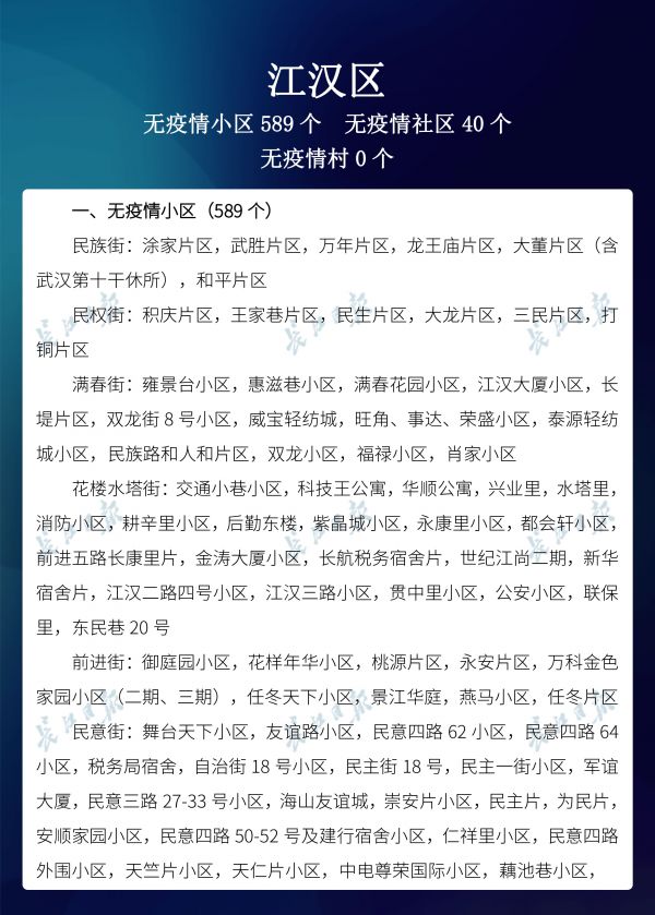 经各区第六次评定,全市无疫情小区新增728个,无疫情社区新增231个,无疫情村(大队)新增59个。同时因疫情变化核查处理,少数无疫情小区、社区、村(大队)被取消或暂停。