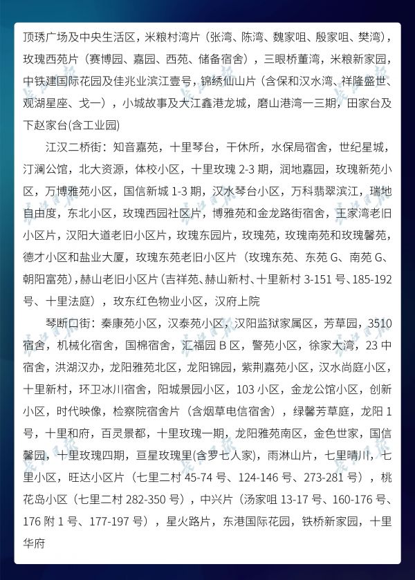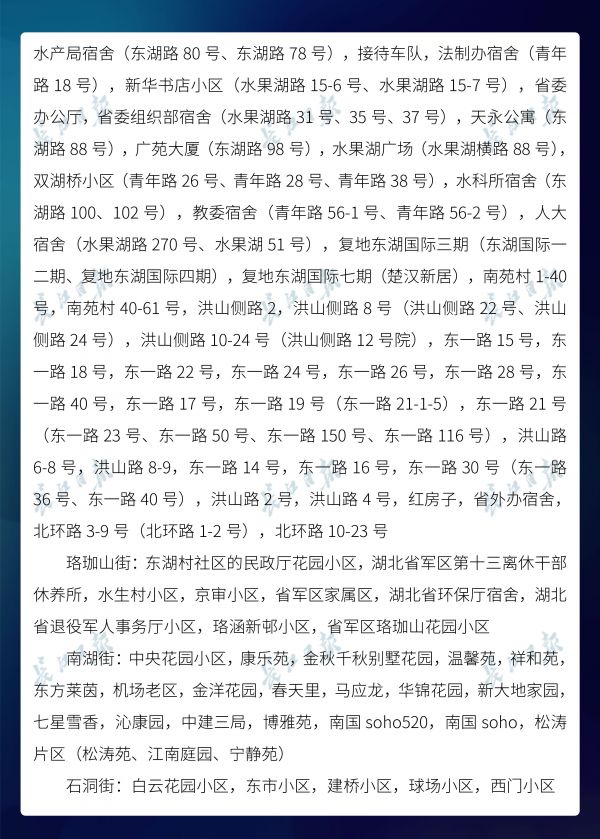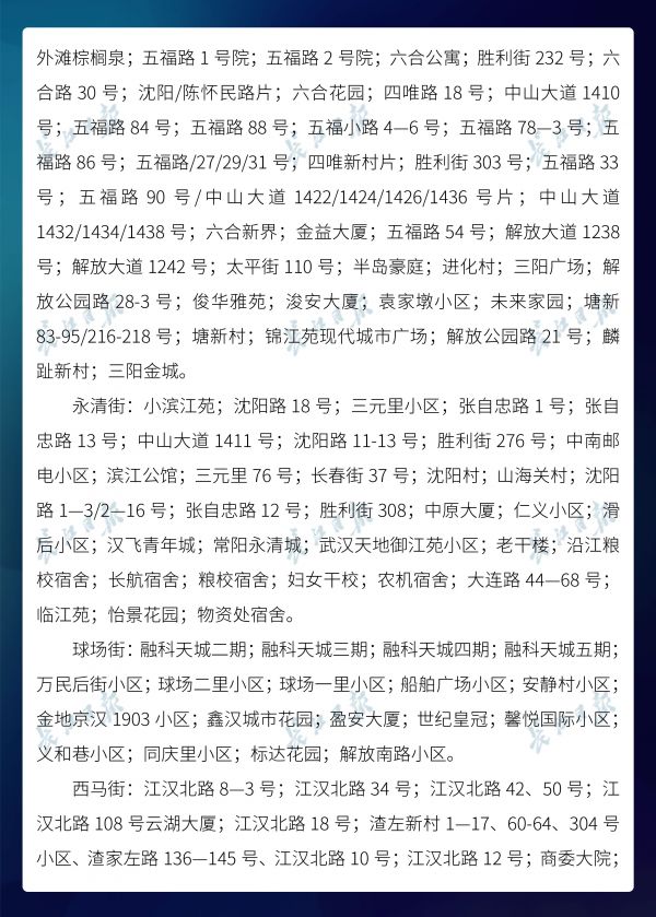 据市疫情防控指挥部相关负责人介绍,根据《关于无疫情小区、村(队)调整管控措施的意见》,全市认定的无疫情小区、村(队)可对管控措施作有序调整,符合当前武汉战“疫”形势。各区要制定符合本区实际的具体措施,要更加注重精准施策,切实把握好尺度,严禁小区居民相互串门、聚集性活动。凡无疫情小区、村(队)被取消认定或暂停认定的,必须立即停止已实施的调整措施。(记者肖娟 通讯员邹宇 高鹏)