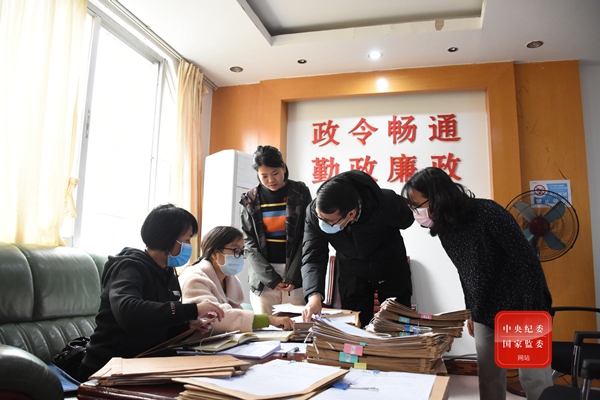 广西壮族自治区梧州市万秀区纪委监委驻区政府办纪检监察组检查夏郢镇危房改造工作“一户一档”台账,督促职能部门加强工作指导和监管,确保危改政策落实。(广西壮族自治区梧州市万秀区纪委监委 吕晓艺 摄)