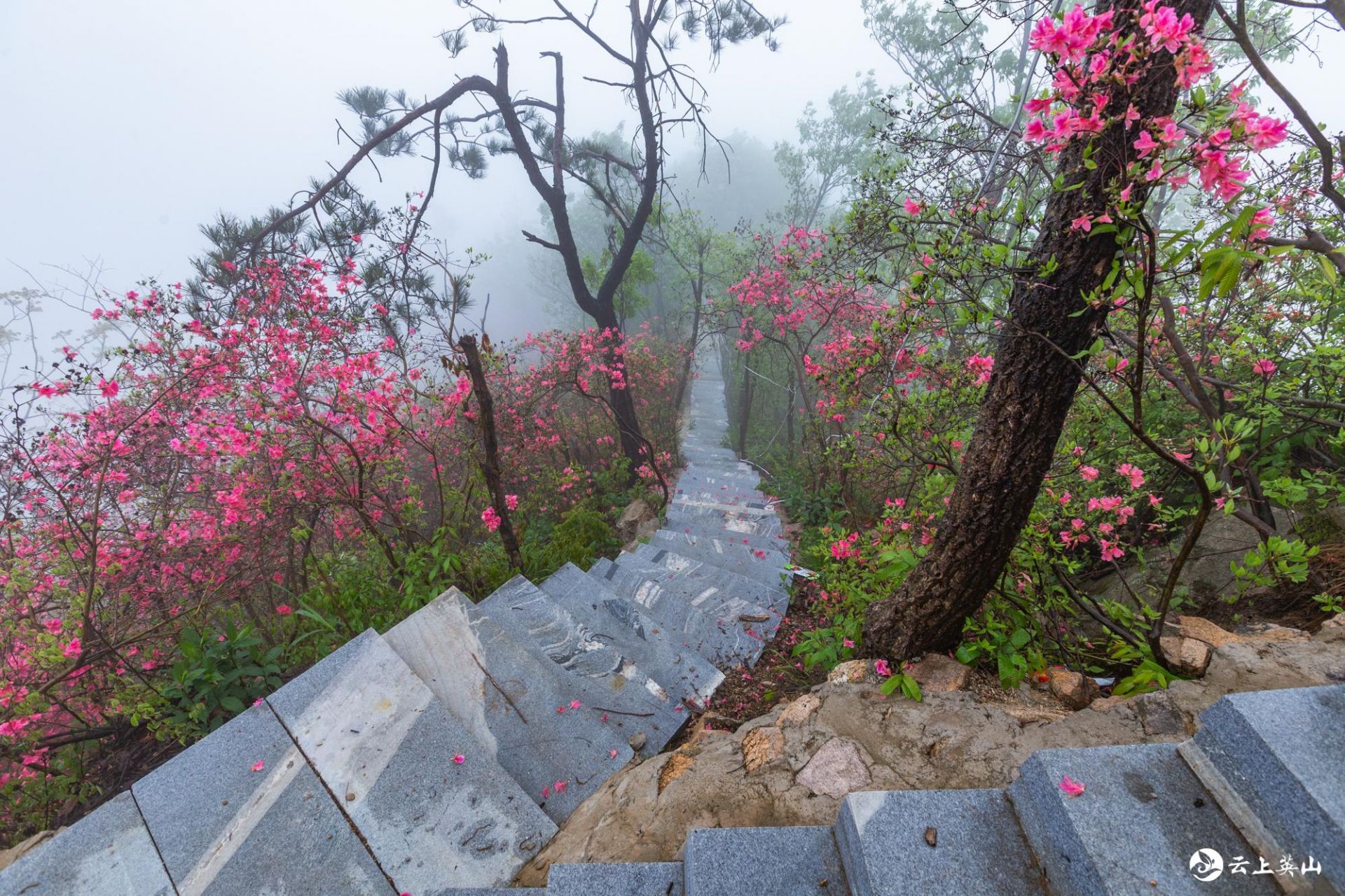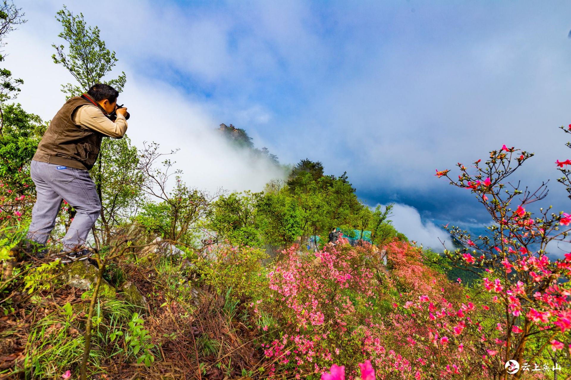 站在山尖往南望去,三角山山峰在云雾中沉浮,别样的“一览众山小”,往北看,白莲河水库尽收眼底,犹如一条长龙蜿蜒起伏,令人叹为观止。