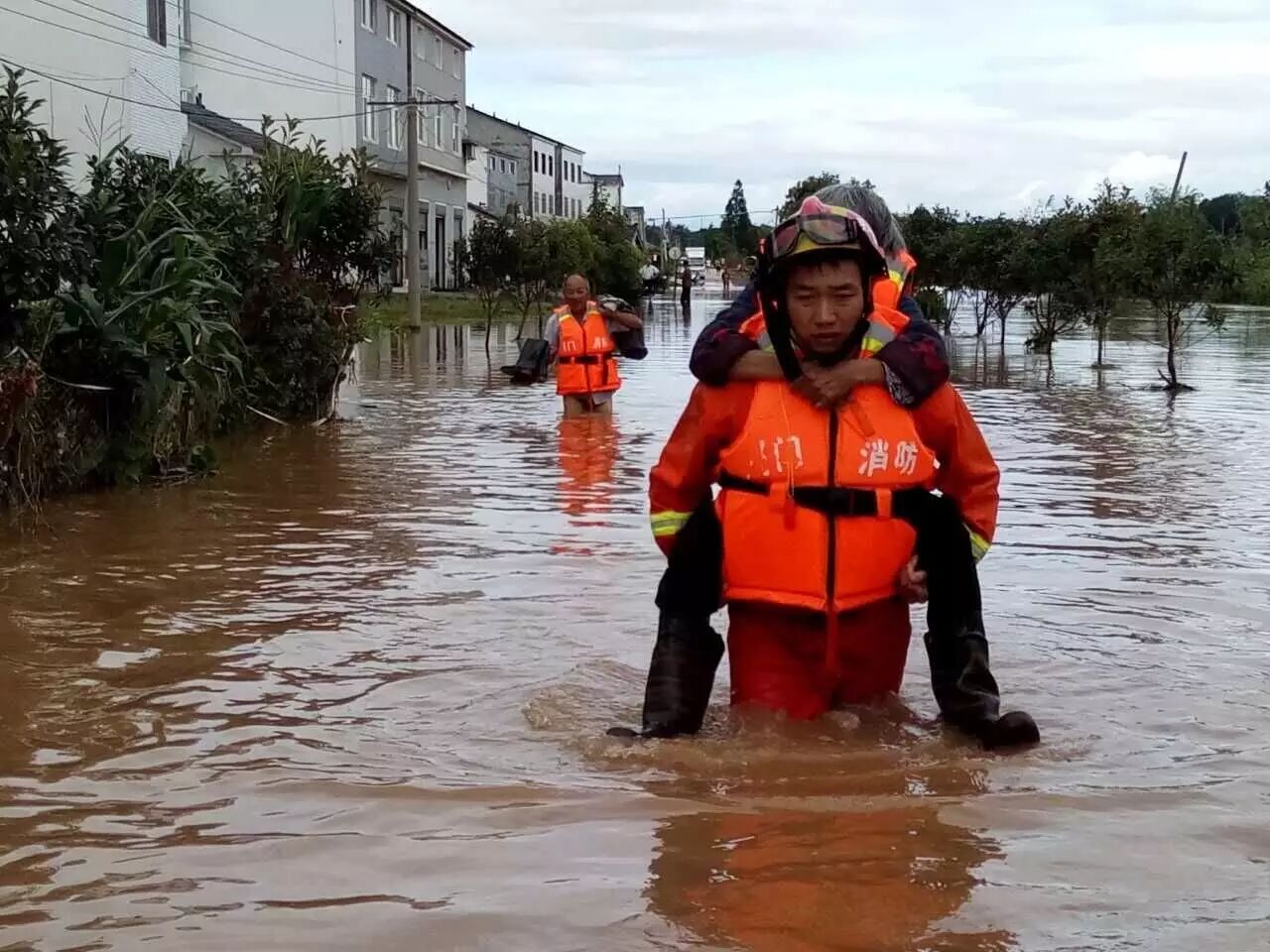 今年7月1日,江汉平原大暴雨,钟祥大部分地区发生洪涝灾害。当天上午8点34分,钟祥消防中队接到群众报警:钟祥市划子口一房屋被淹,一名老人和两名儿童被困。