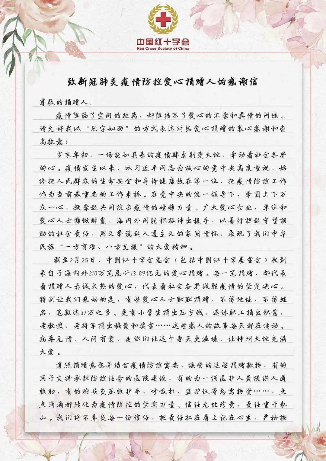 致新冠肺炎疫情防控爱心捐赠人的感谢信