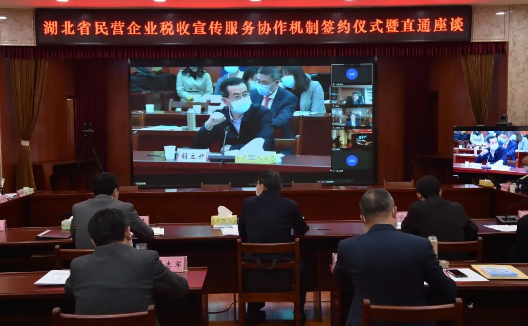 4月16日,湖北省税务局和省工商业联合会、楚商联合会、注册税务师协会紧密协作,联合举行湖北省民营企业税收宣传服务协作机制签约仪式暨直通座谈活动,签署建立民营企业税收宣传服务协作机制协议,联合推行五项税收协作机制,提升民营企业纳税满意度和税收遵从度,服务民营经济更好更快发展。活动采取现场座谈和在线交流方式,向部分在鄂全国人大代表、政协委员、民营企业家以及财税专家问需问难、问效问计,代表委员和民营企业家结合复工复产的难点痛点,吐露心声,建言献策……