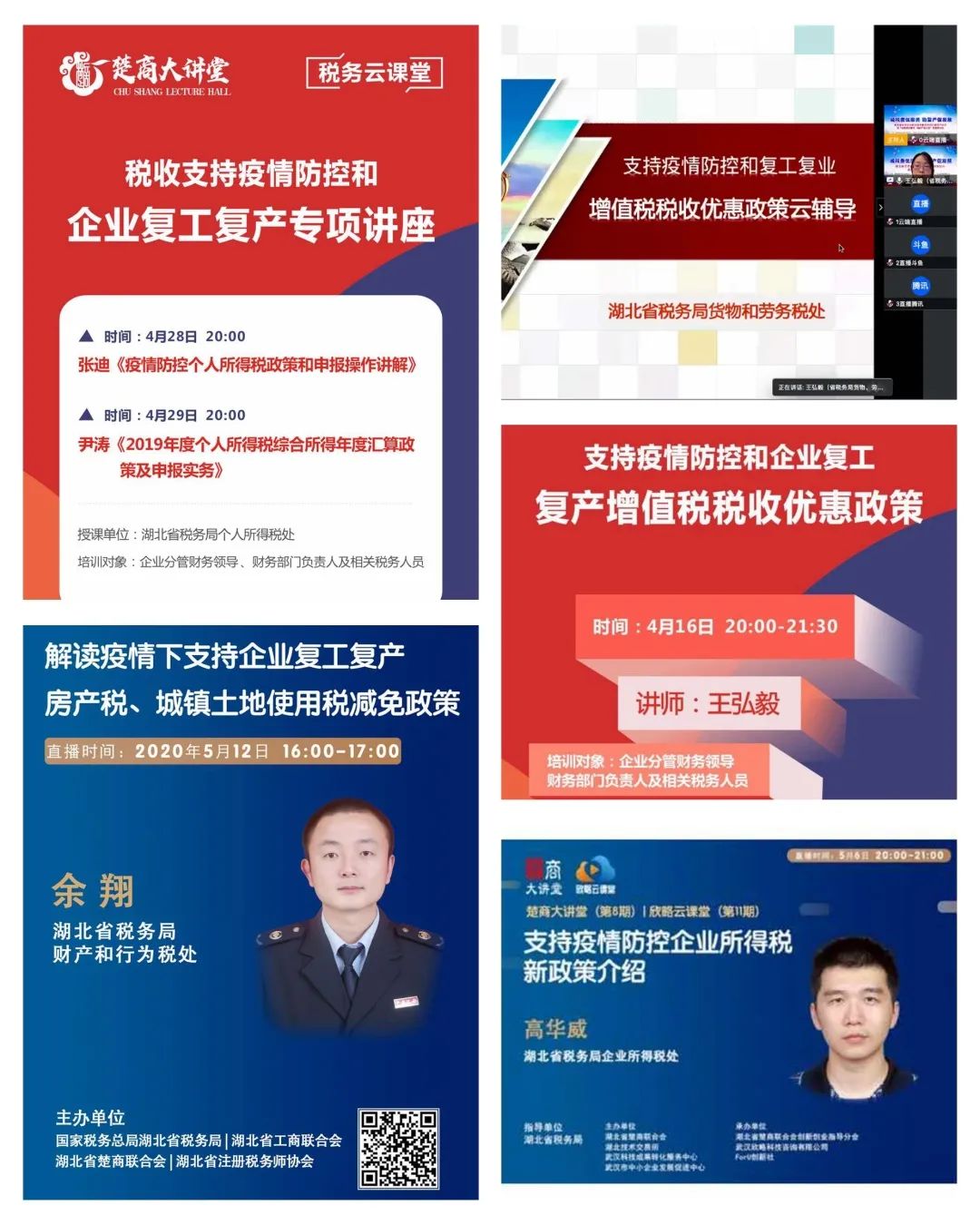 按照“优惠政策落实要给力、‘非接触式’办税要添力、数据服务大局要尽力、疫情防控工作要加力”的要求,湖北税务通过网络“云端”开展纳税服务,让纳税服务既贴心又安心。开通税收“云课堂”,共举办4个主题5期云课堂,共计23699人次在线收听收看,社会反响良好。融合网站、微博、微信,策划“疫情期间湖北税务12366热点问答”“我们的战‘疫’”“税宣月荟萃”“秒懂税务微视频”等系列专题,累计发文537条,并制作发布《春风助远航》《税收数据里“听到”的马达声》等微视频。上线运行“湖北助力企业复工复产信息平台”,为企业牵线搭桥,助力企业复工复产。