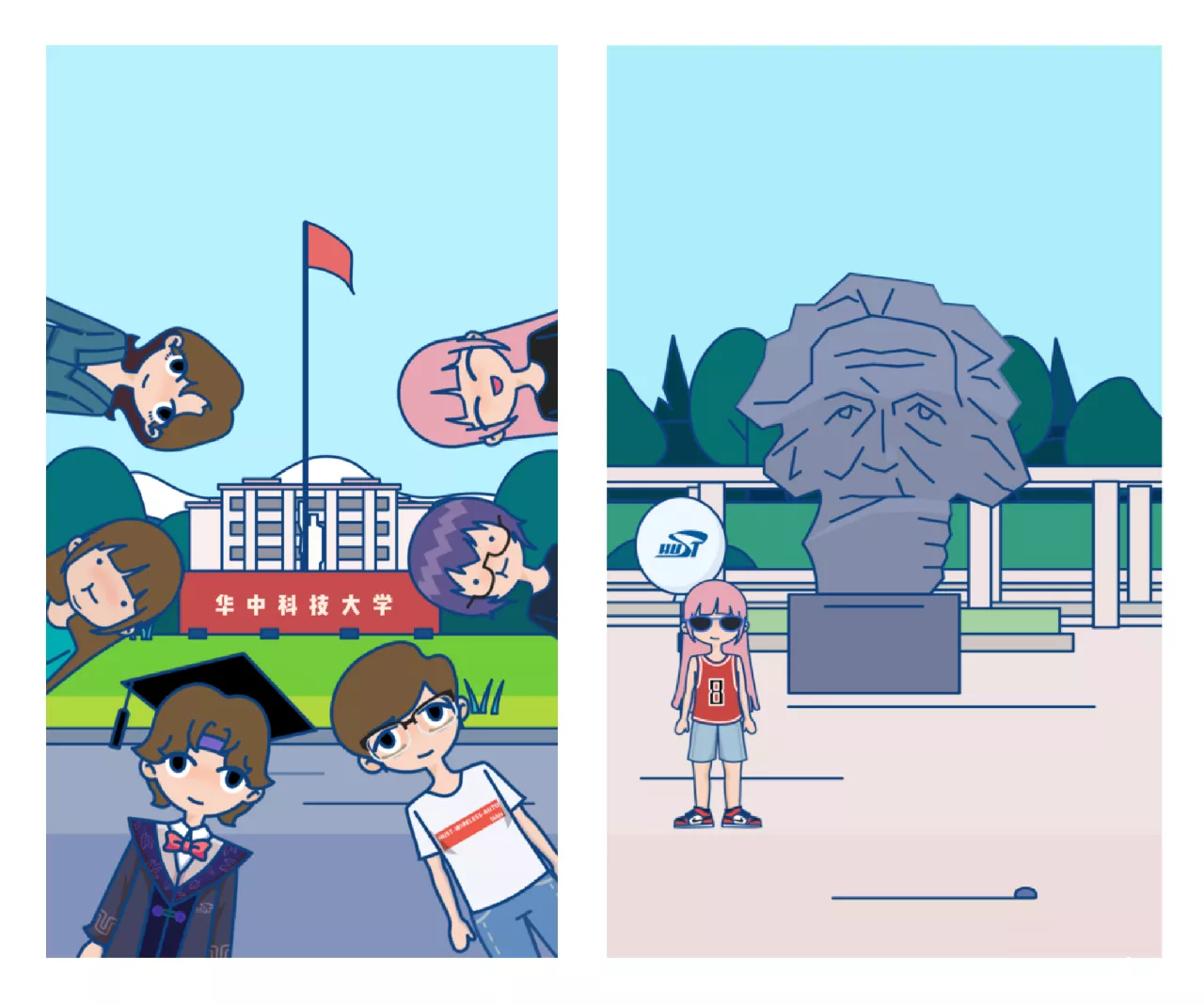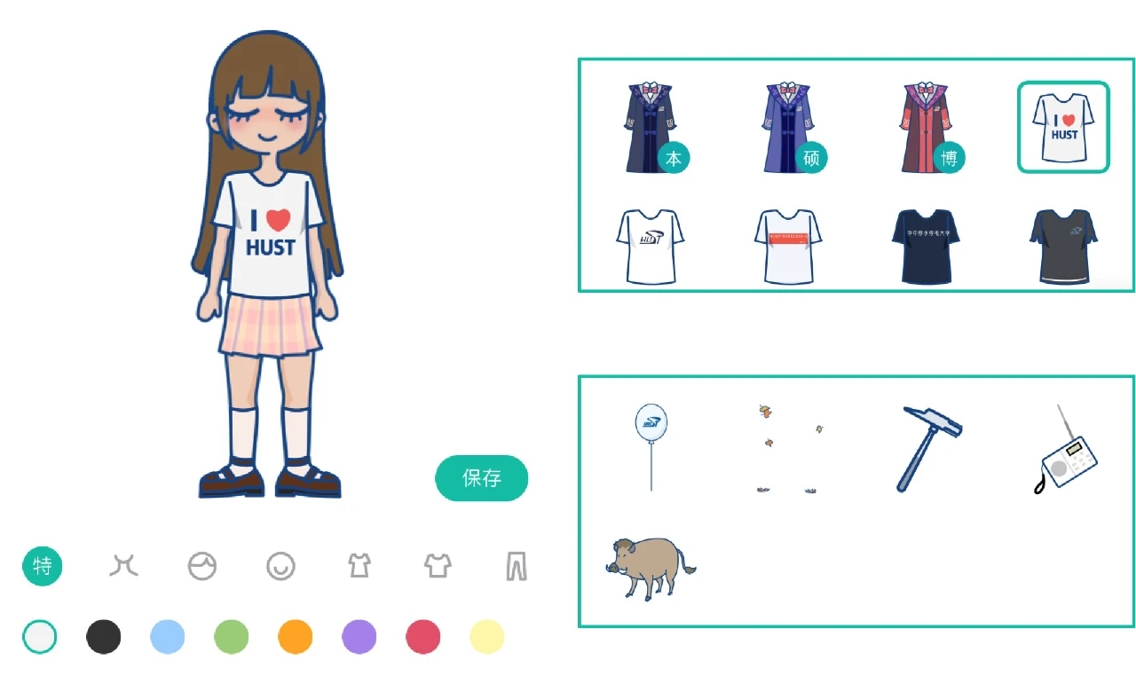 小程序除了完全根据真实场景绘制的动漫场景外,还专门设计了华中大专属毕业礼服、T恤等服装,新增了锤子、野猪、梧桐树叶等令人会心一笑的元素。