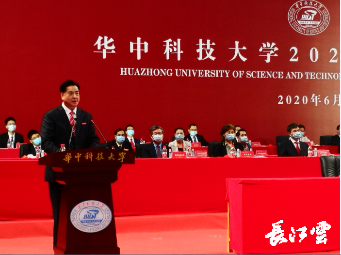 6月21日,华中科技大学2020年毕业典礼在光谷体育馆举行,毕业典礼采用线上线下相结合的方式进行,中国工程院院士、华中科技大学校长李元元以《不惧风雨路 迈步新征程》为题,寄语广大毕业生。疫情中,华中科技大学11家附属医院3万4千多名医护人员尽锐出战、舍生忘死、拼尽全力,为更多的病人带去生的希望。学校一手抓严格防控疫情,积极组织抗疫药物药理研发、医疗装备研制,一手抢抓机遇、化危为机,主动谋划和推进一批公共卫生和重大疾病防治大平台、大项目建设,努力展现中国特色世界一流大学的责任担当。