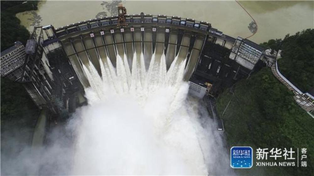 ↑6月22日,凤滩水库开启全部闸门泄洪