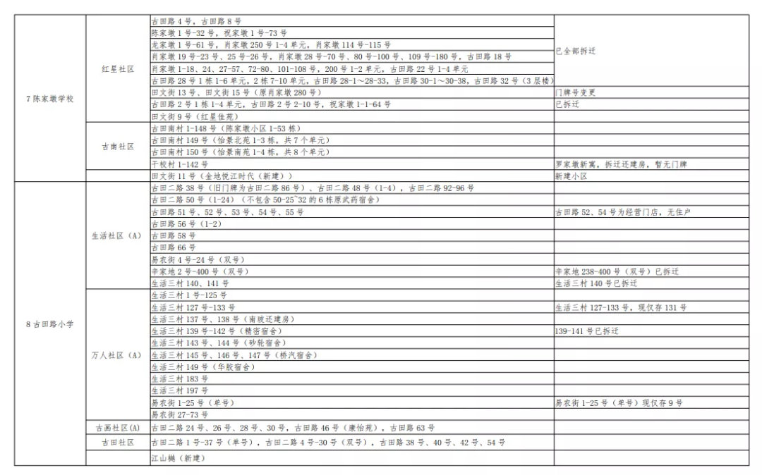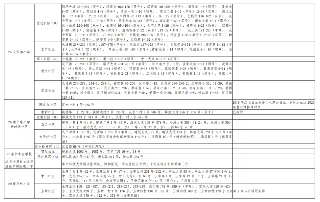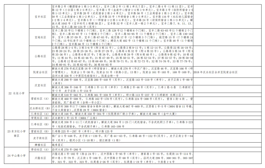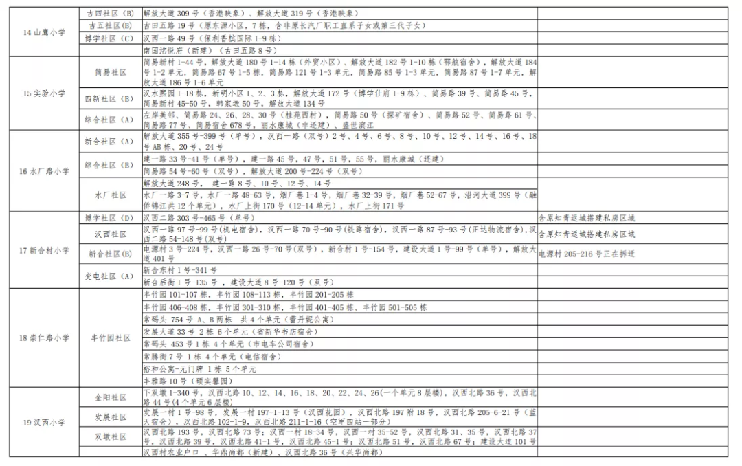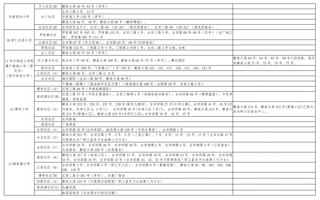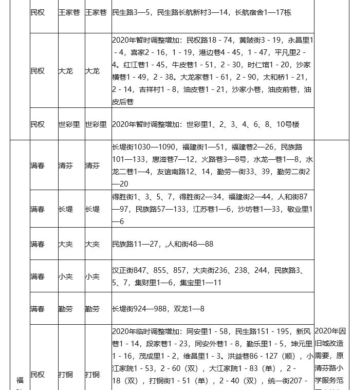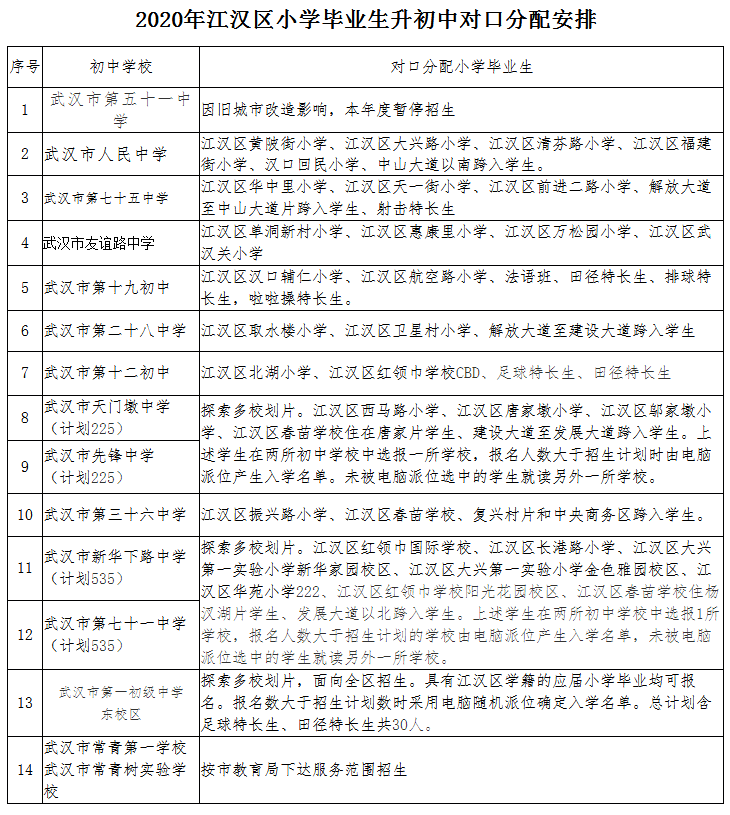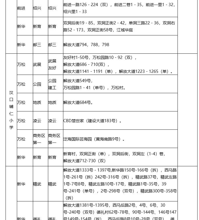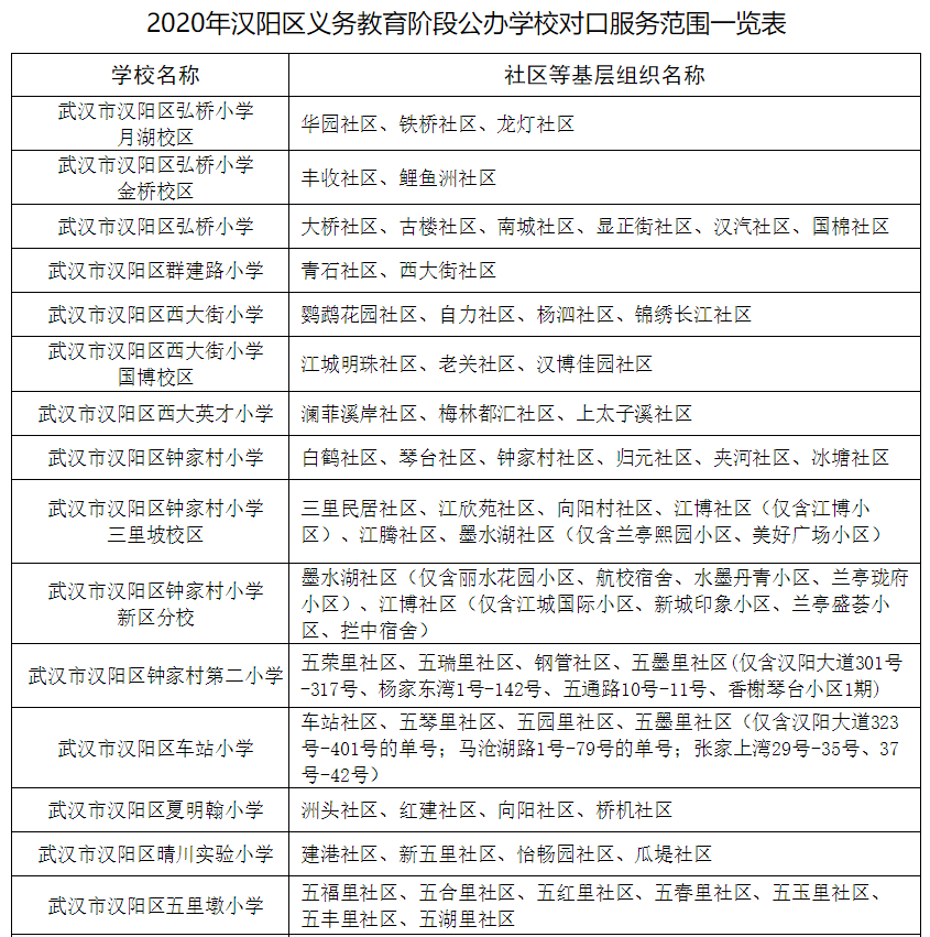 2020年,因旧城改造,黄陂街小学、清芬路小学暂停招收一年级学生,原对口服务范围内学生临时调整到周边小学入学。为缓解江汉区北部地区入学矛盾,从今年起,每年根据网上报名摸底情况,对服务范围进行调增或调减的动态调整。