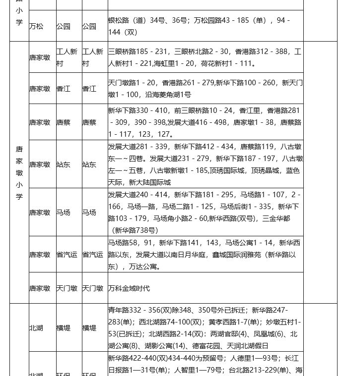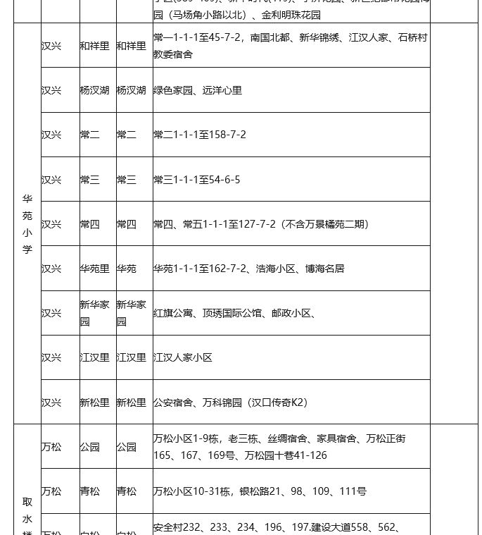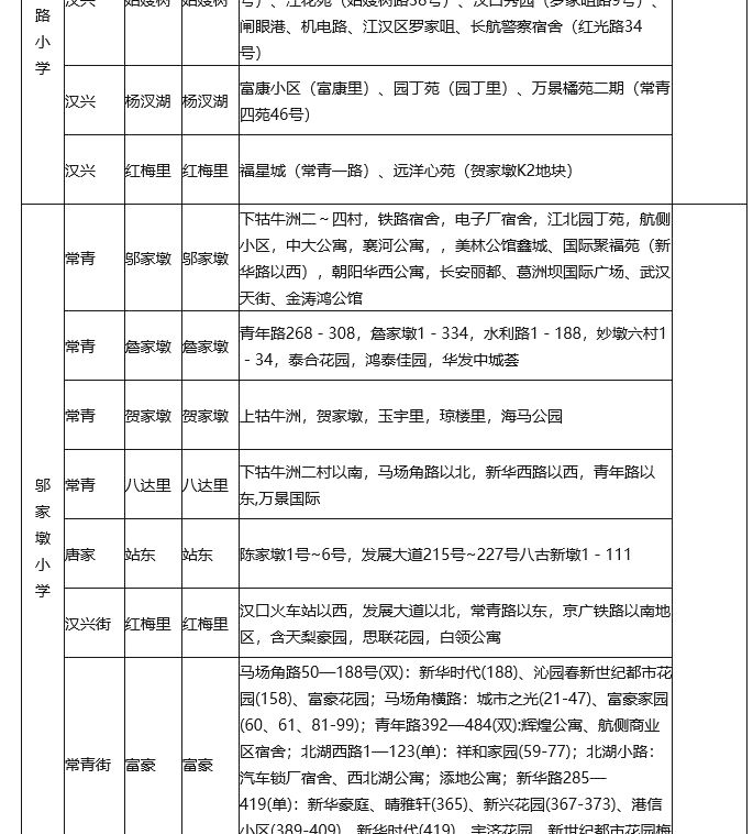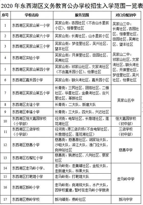 今日,东西湖区教育局公布义务教育公办学校招生入学范围。