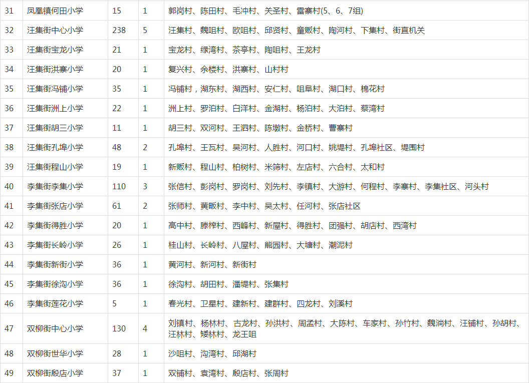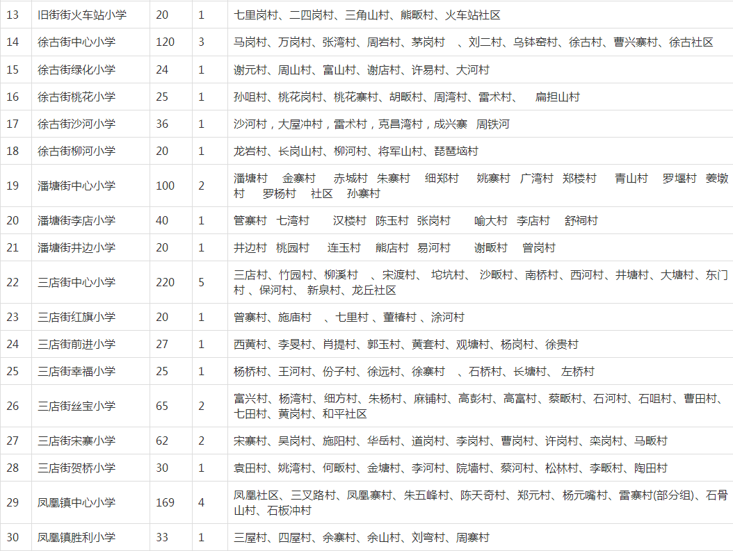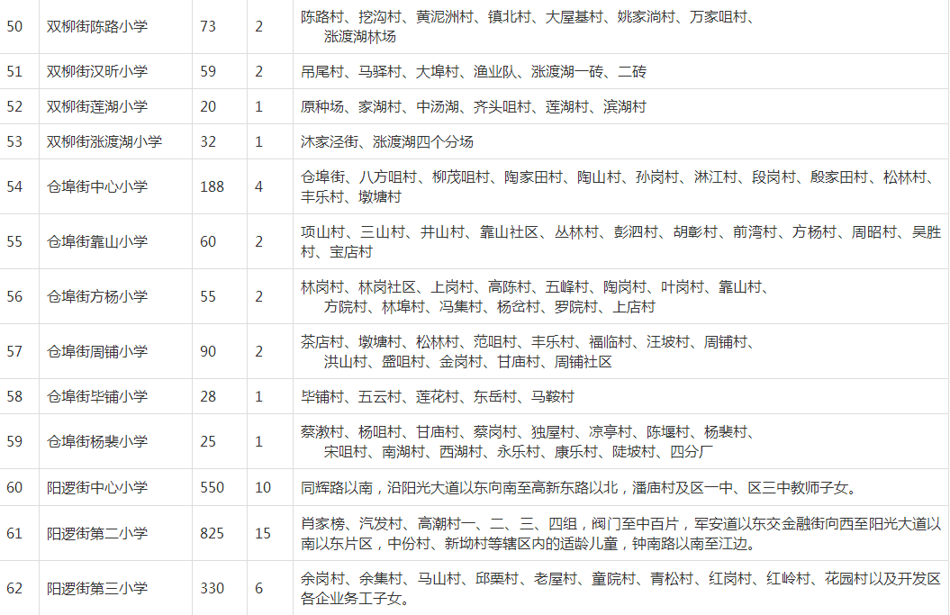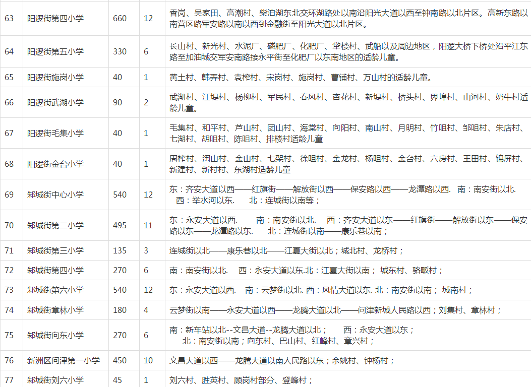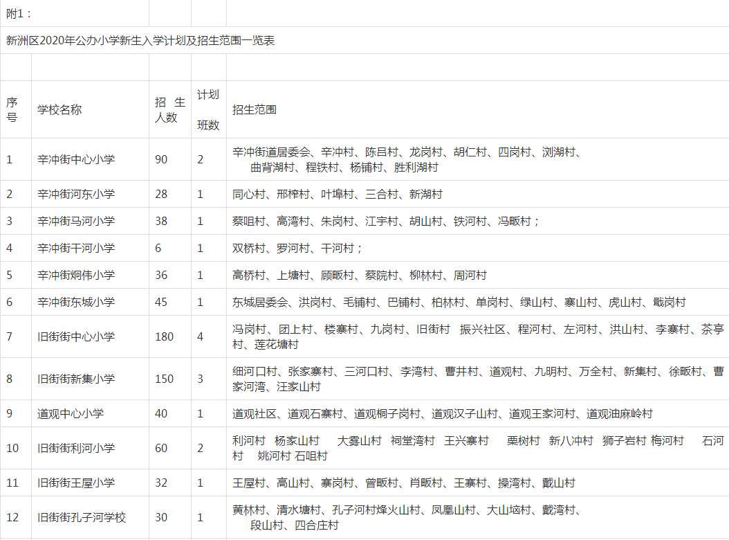 新洲区2020年公办小学新生入学计划及招生范围一览表