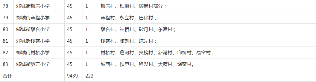 建设中心小学:新集村(部分)、建洲村、工业港村、建设村、胡漖村。