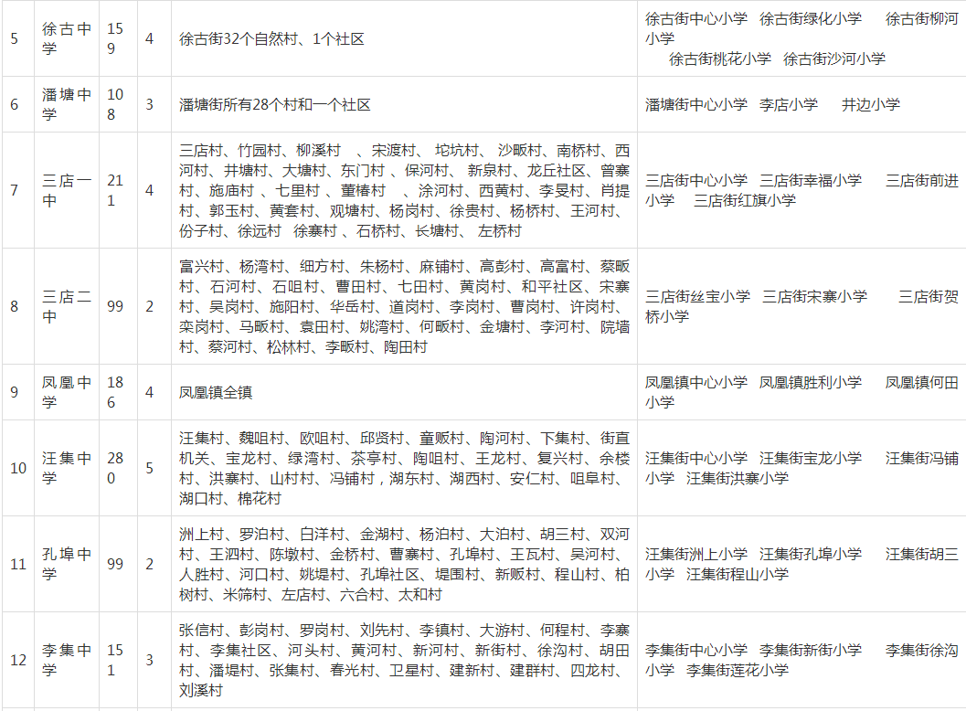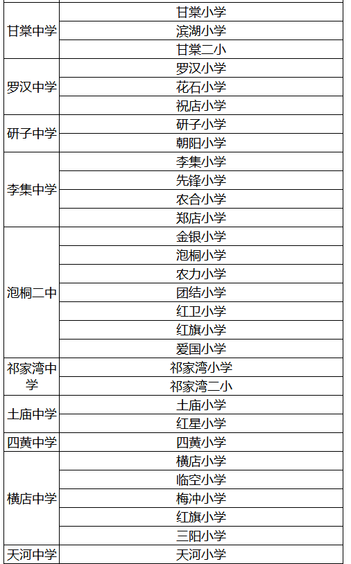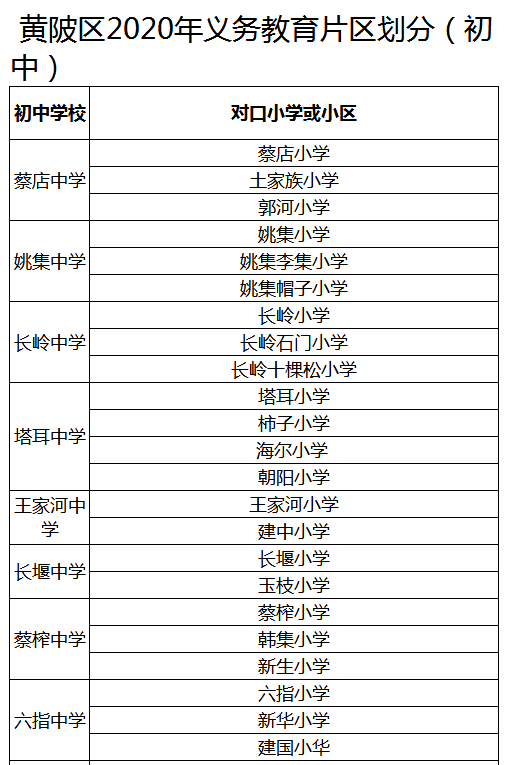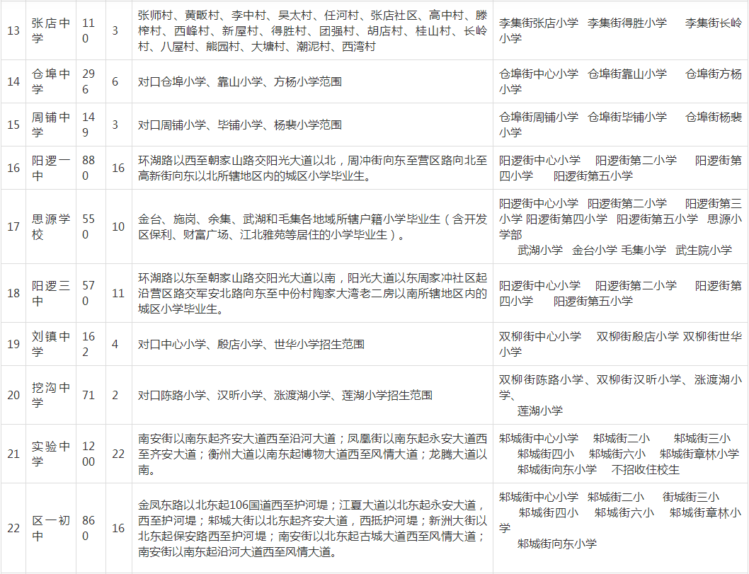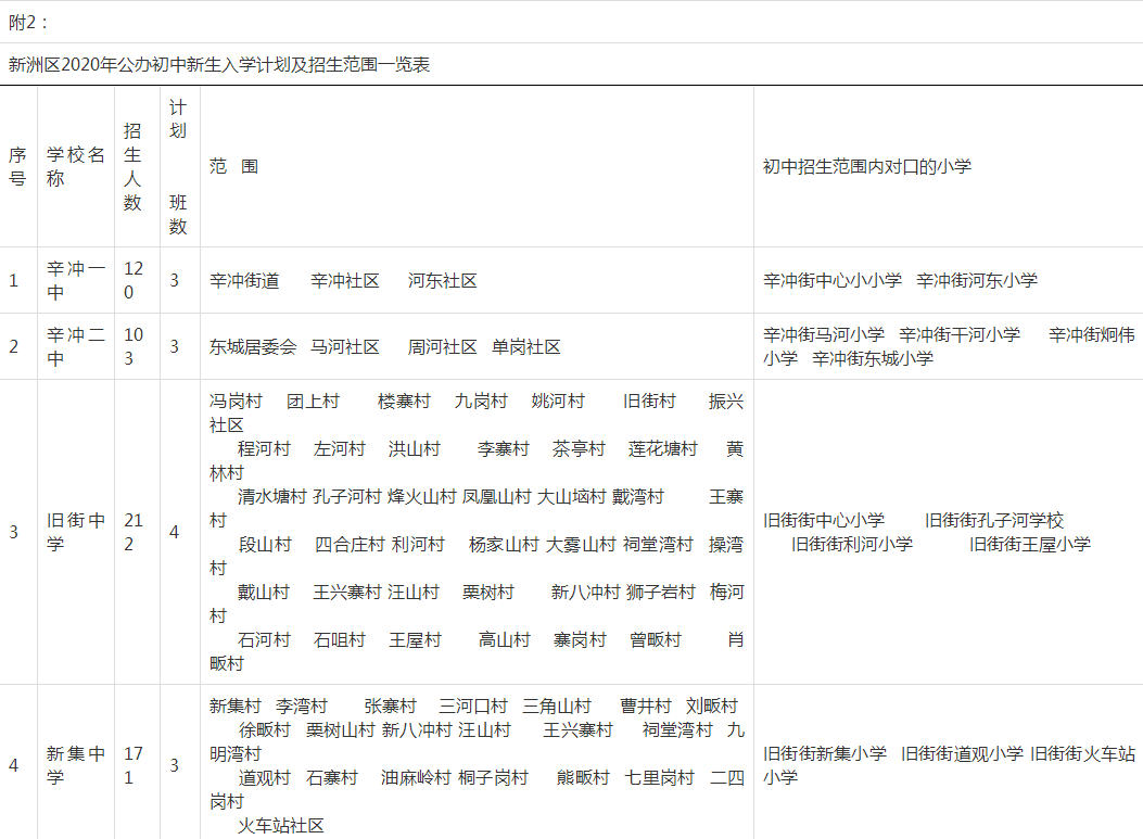 新洲区2020年公办初中新生入学计划及招生范围一览表