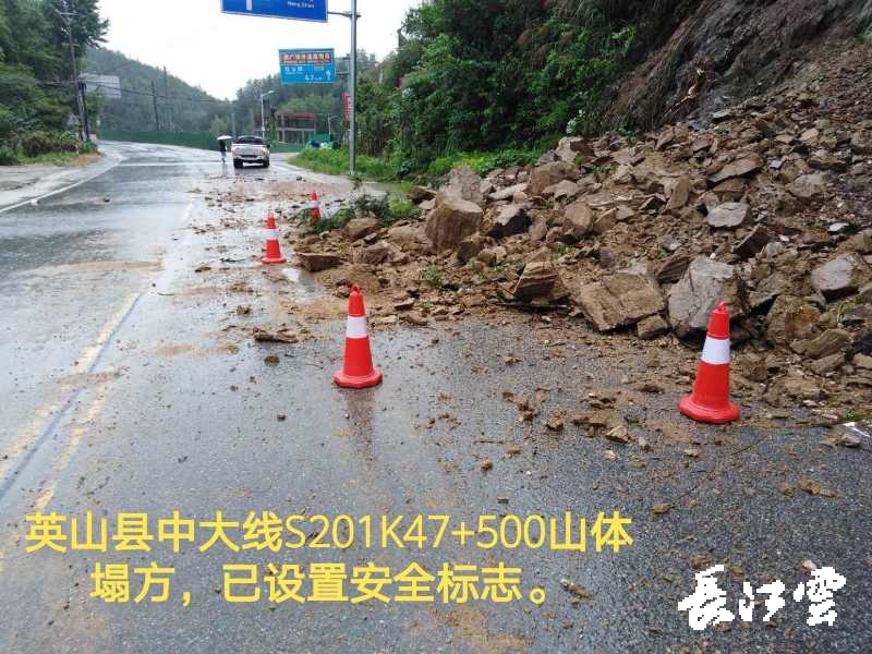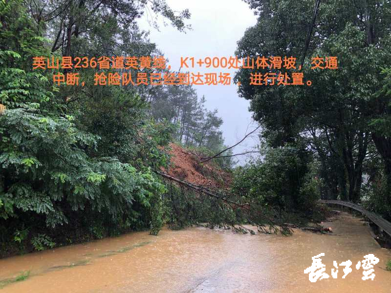 湖北广电融媒体记者了解到,大暴雨导致山体滑坡,英山多条国省干道交通中断。