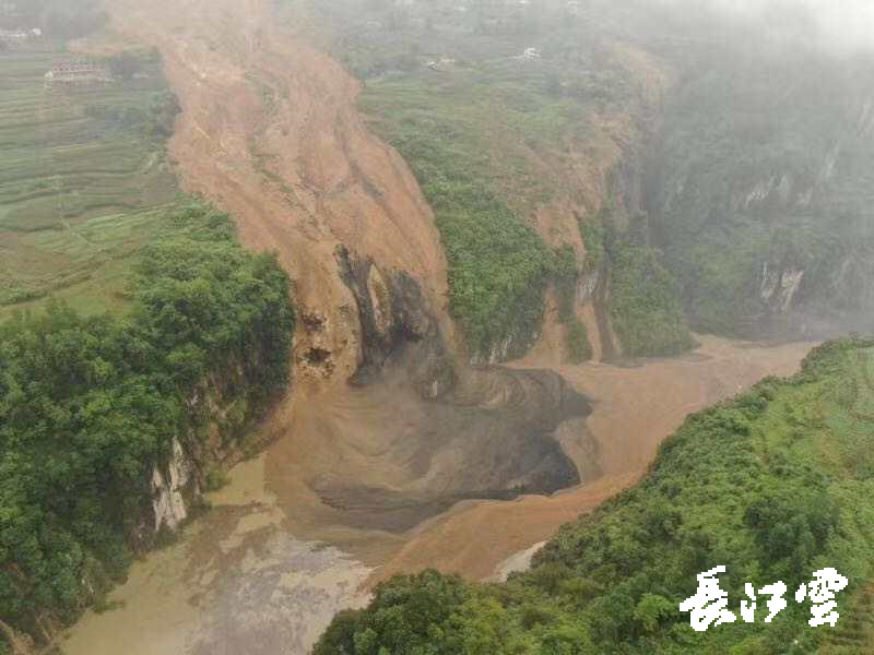 7月21日5时30分左右,屯堡乡马者村沙子坝滑坡体出现大面积滑移,已经堵塞桥坡河形成堰塞湖,上游水位已上涨5米左右。