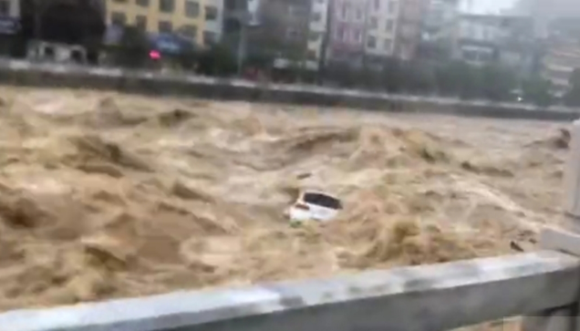 报料内容:受暴雨影响,截止到7月26日,恩施市建始县城区河水上涨,水流速度非常快,路上的汽车都被洪水冲走了,情况十分危险。