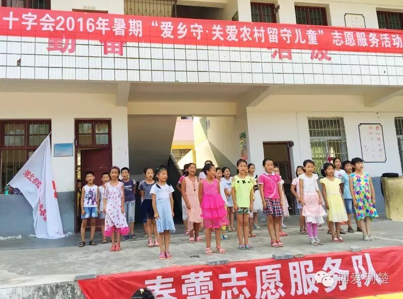 党支部党员还参加了正在村希望小学开展的由省红十字会组织的2016年暑期“爱乡守•关爱农村留守儿童” 志愿服务活动,现场观看了学生自编自演的汇报演出,探望了在此开展支教活动的湖北第二师范学院红十字春蕾志愿服务队10名队员。