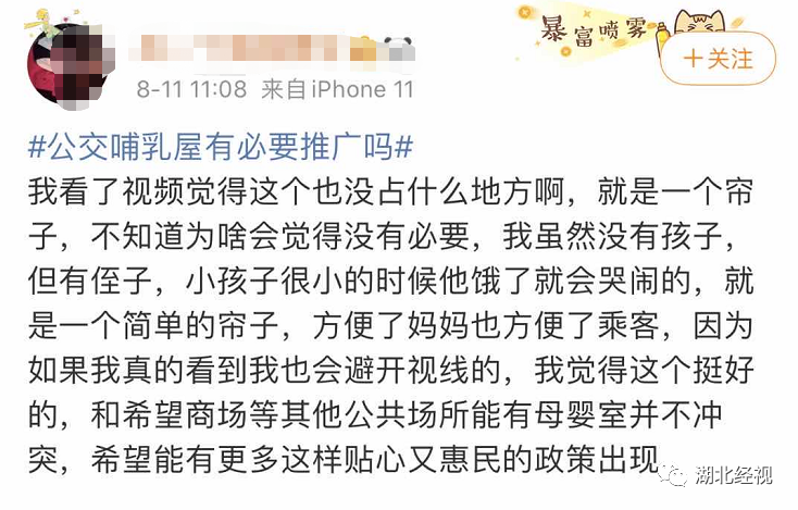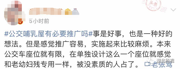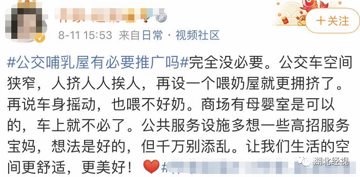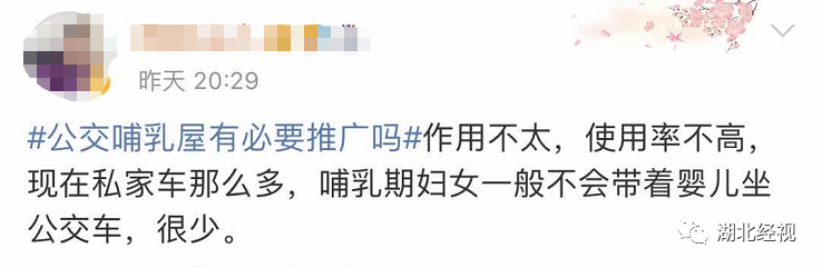 还有网友表示,在公交上设置这个没必要。毕竟在公交上哺乳的人不多,喂奶也不差这一会儿,这样也影响了其他乘客的出行。