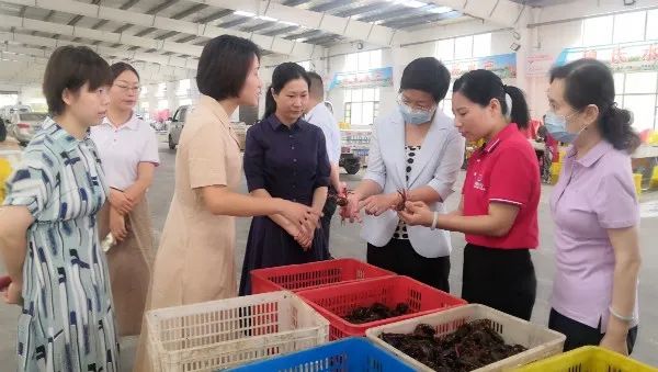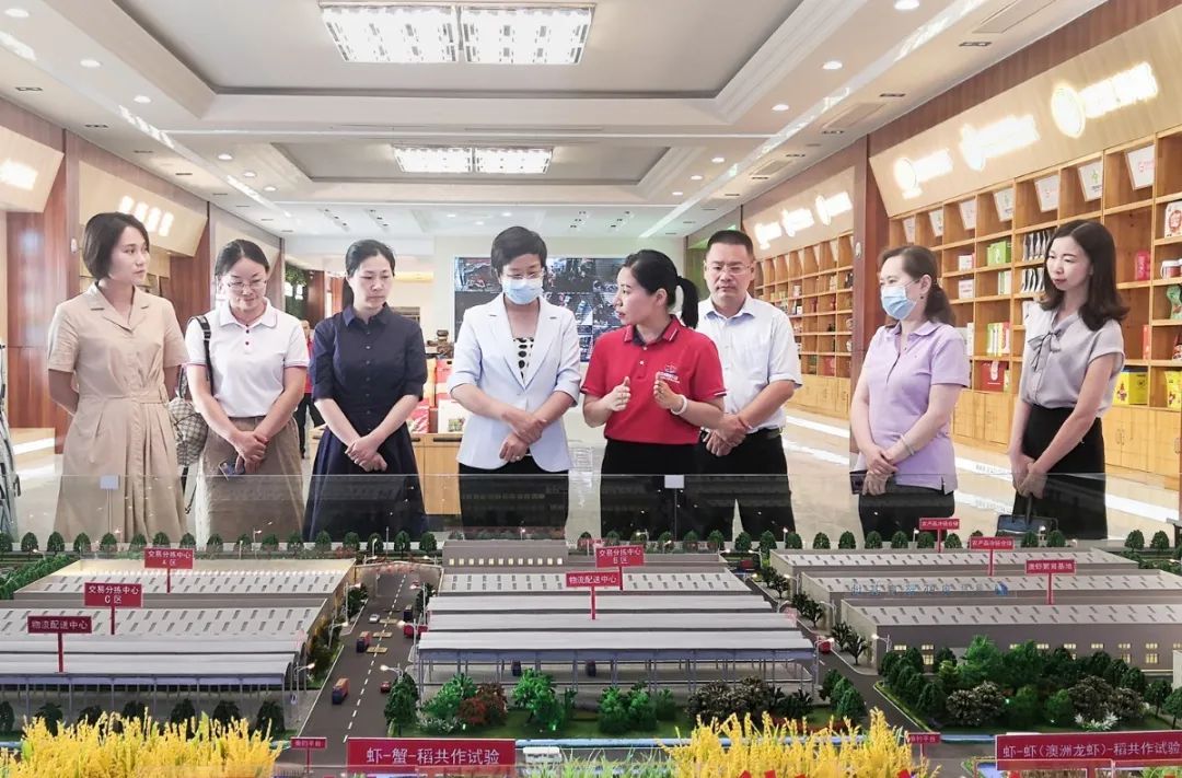 调研组参观了潜网集团——中国小龙虾交易中心巾帼创业就业基地的农特产品展厅、小龙虾交易市场和“虾嫂之家”妇女微家。