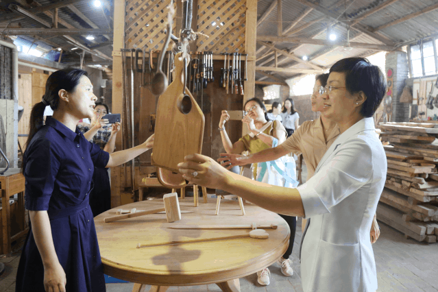 调研组参观园林办事处大桥村小鱼工坊·妇女微家,了解特色妇女微家工作开展情况。