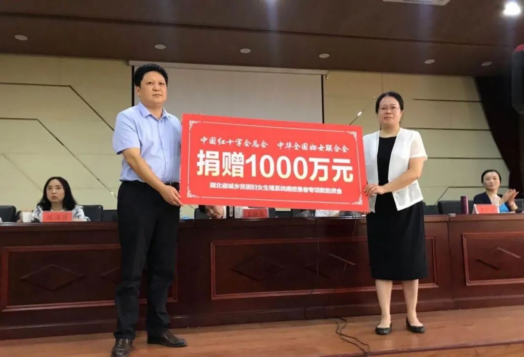 省红十字会党组成员蔡卿介绍了城乡贫困妇女生殖系统大病救助项目内容,并代表中国红十字会向湖北省妇联捐赠贫困妇女生殖系统大病救助金1000万元。该项目将对我省1万名罹患女性生殖系统癌症的城乡贫困妇女进行救助,每人救助1000元。