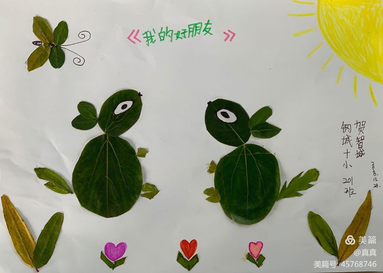 凋零的树叶被孩子们赋予了新的生命,树叶似乎“活”了!