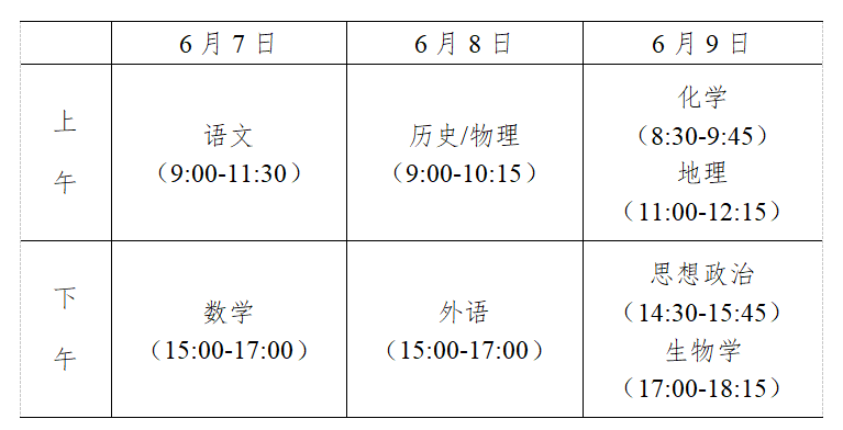 全国统一高考科目的考试安排以教育部统一公布的安排为准,如有调整,我省高中学业水平选择性考试科目的考试安排相应调整。