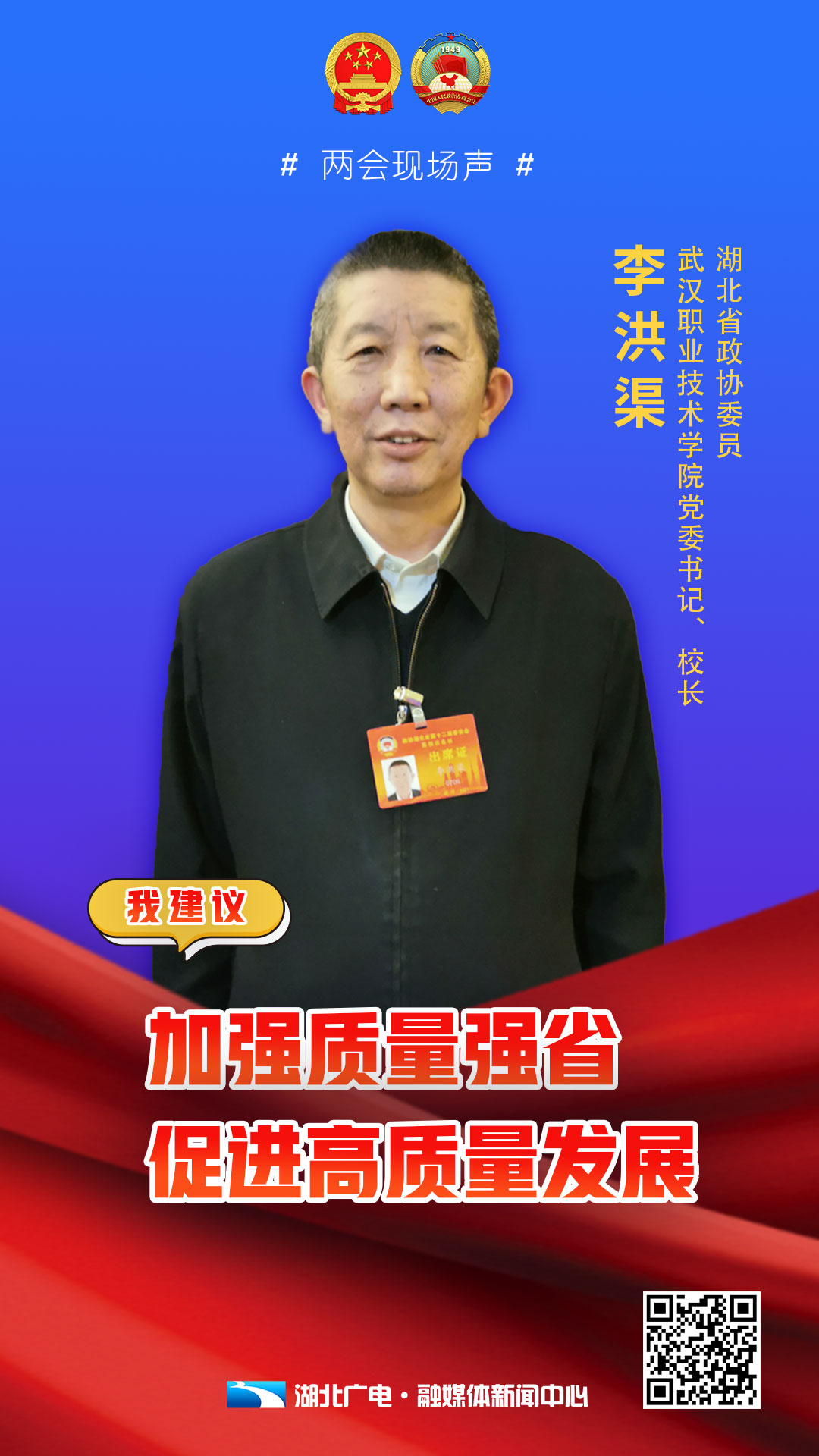 今年,李洪渠委员提出了《加强质量强省建设,促进高质量发展》的建议。
