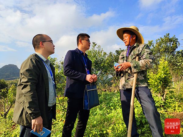 广西壮族自治区崇左市天等县纪委监委聚焦脱贫户返贫问题,深入一线了解脱贫摘帽后教育、就业、产业等扶贫政策执行和扶贫工作队是否继续有效开展帮扶等情况,确保群众脱贫后持续稳定增收。图为该县纪检监察干部到上映乡脱贫户赵贵橘子种植基地实地走访。(广西壮族自治区崇左市天等县纪委监委 农世繁 摄)