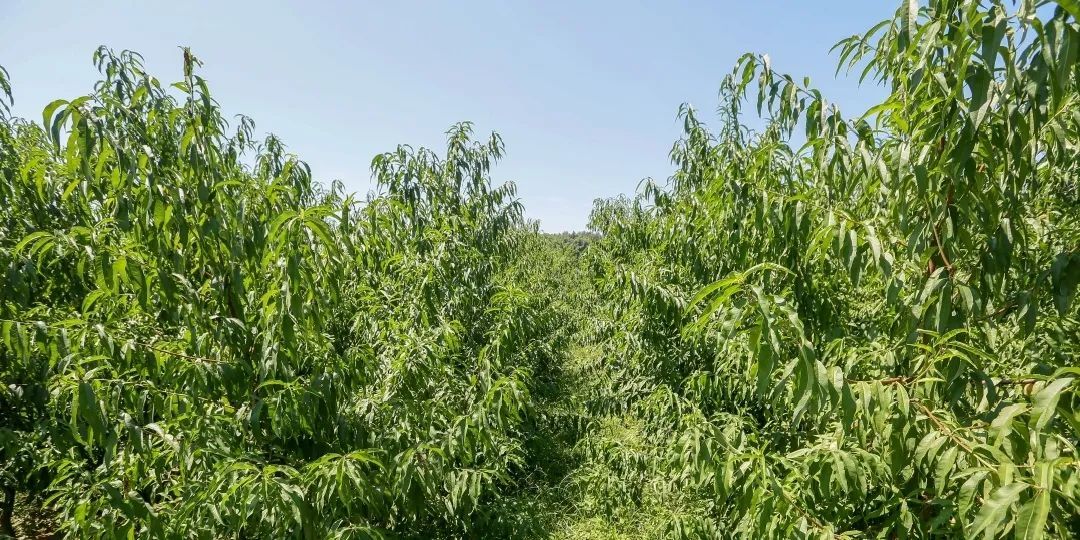 用老方法种桃子,密植模式下满树都是枝条,看起来郁郁葱葱,一棵树却只能结二三十个果。