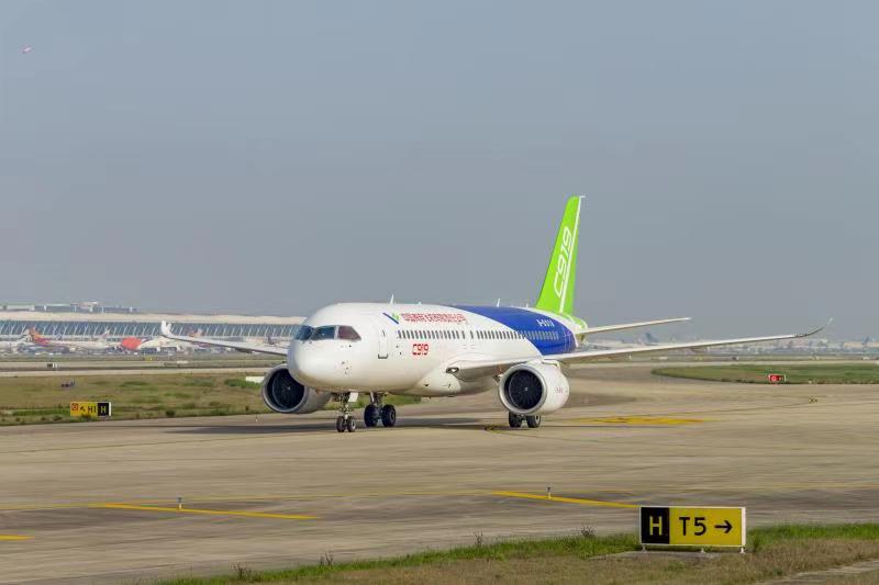 C919大型客机是我国自行研制、具有自主知识产权的大型喷气式客机,2017年5月5日在上海浦东国际机场完成首飞。