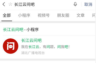 您可以在微信搜索页面搜索“长江云问吧”,点击进入小程序;