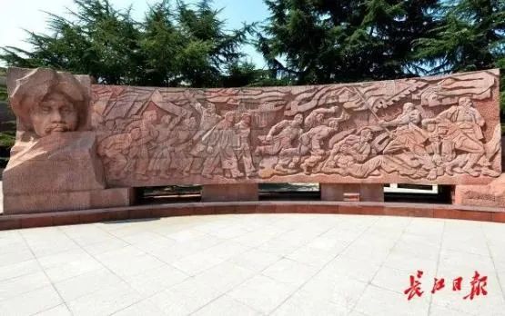 武汉二七纪念馆门前的浮雕反映二七大罢工场景。记者喻志勇 摄