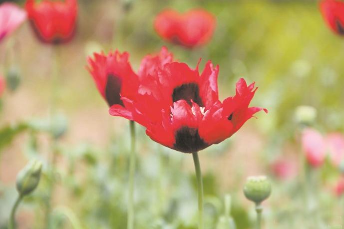 这里还有难得一见的罂粟花。武汉植物园是国内首个公开展览罂粟的植物园。今年种植包括毒品原植物罂粟在内的罂粟属植物30多种、5000株左右,红白粉紫橙黑杏黄,撞色激烈。