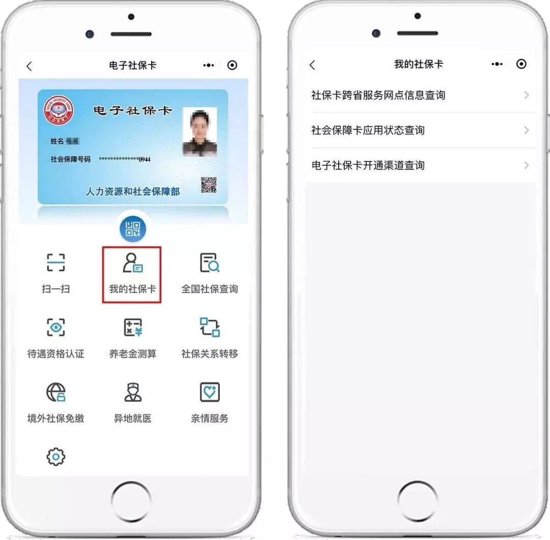 或进入“国家政务服务平台”微信小程序,点击下方“我的证照”-“社会保障卡”,选择“电子社保卡”同样可进入服务。