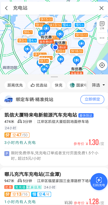 ● 通过高德地图、百度地图等地图软件搜索“充电站”关键词,或点击出行页面“充电站”功能按钮查询。