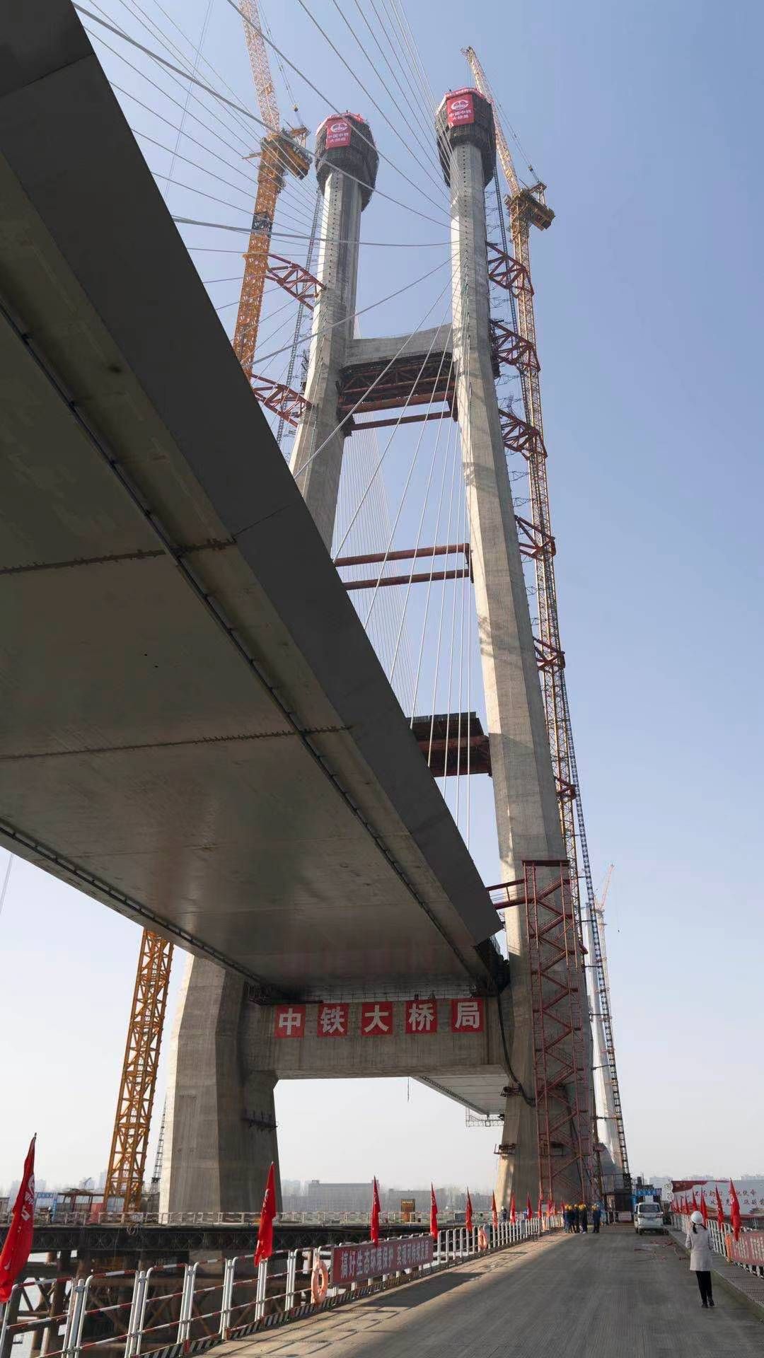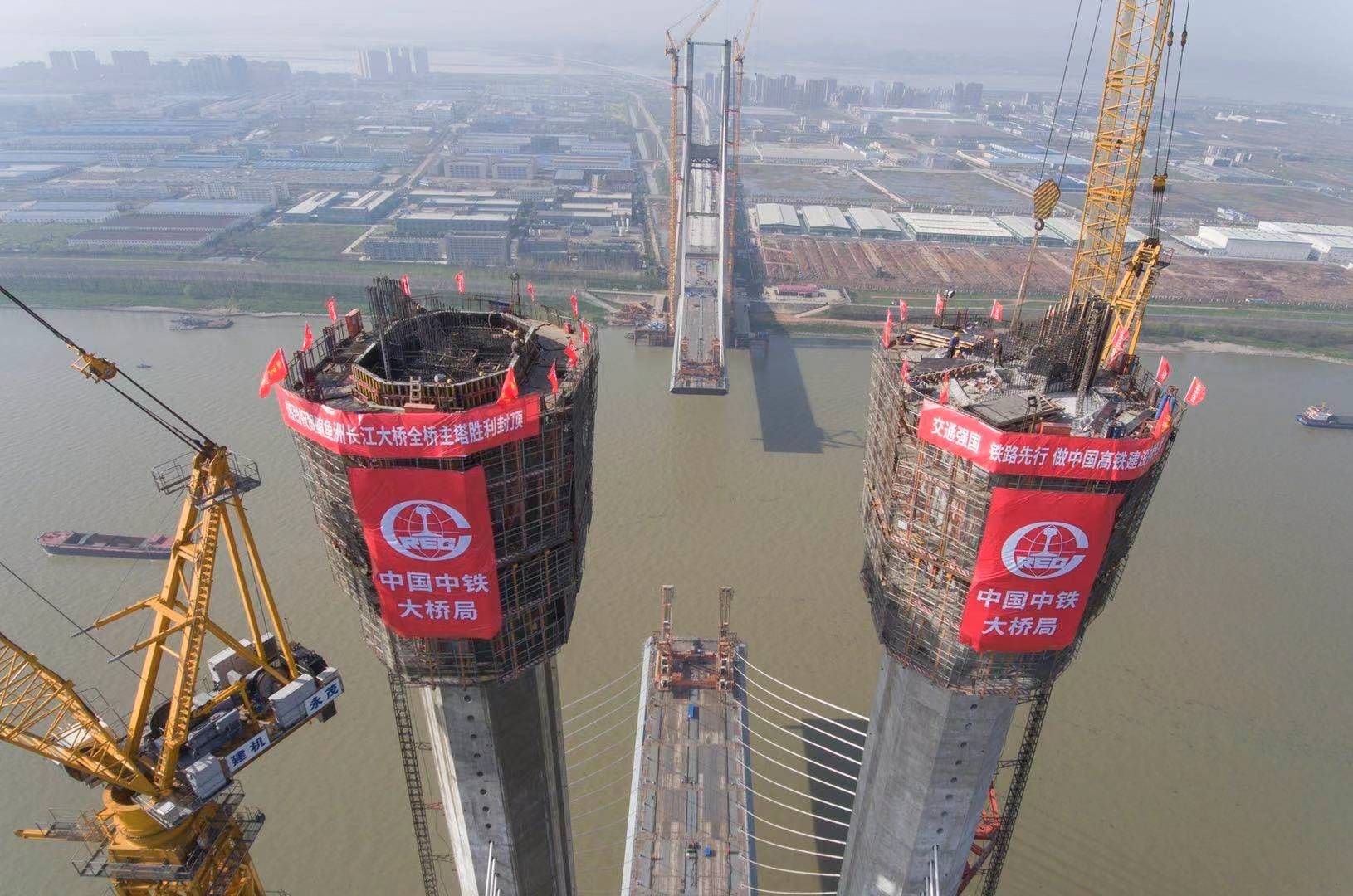 3月25日,随着最后一方混凝土浇注完毕,由武九客专湖北公司建设、中铁大桥院设计、中铁大桥局施工的安九铁路鳊鱼洲长江大桥主桥北主塔封顶,标志着我国首座交叉索斜拉桥主桥两个主塔全部封顶。